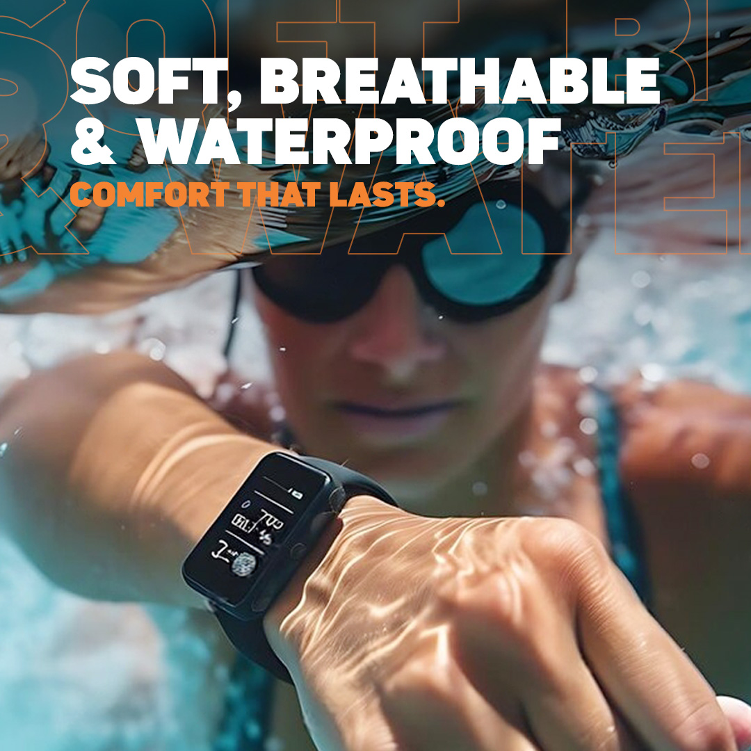 Soft & Breathable Comfort: Made from premium-grade silicone, this strap is lightweight, skin-friendly, and irritation-free. The waterproof, sweatproof, and quick-dry material ensures all-day comfort.